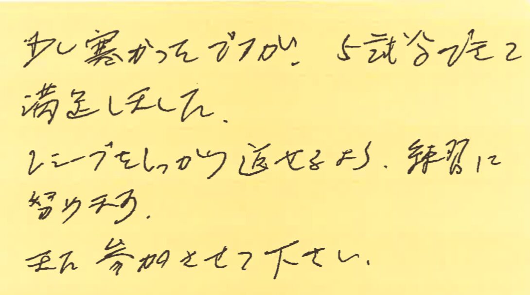 また、対戦させていただける時のために、しっかり修行しておきます!