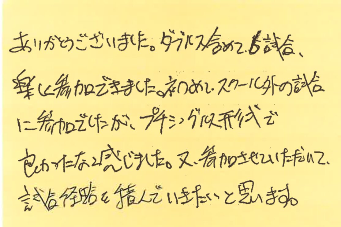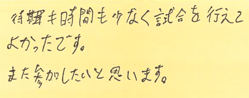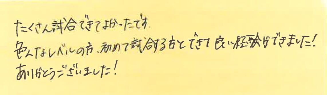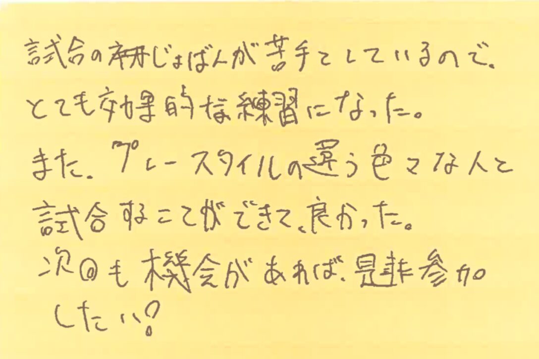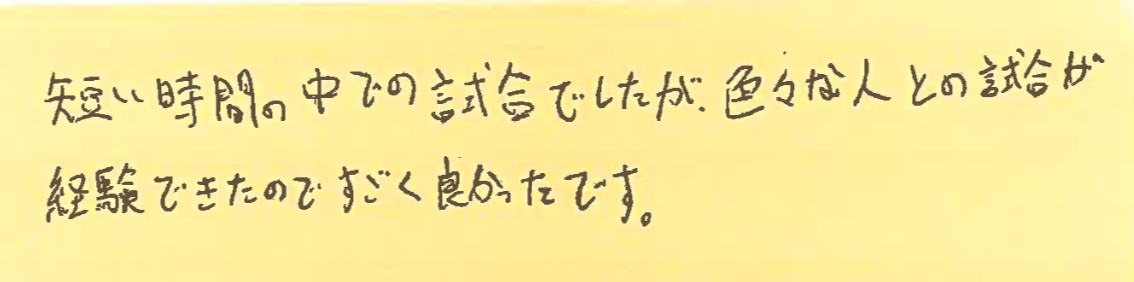 この日はしっかり打つ方がたくさん集まっての大会となり、とても充実した試合をさせていただきました。