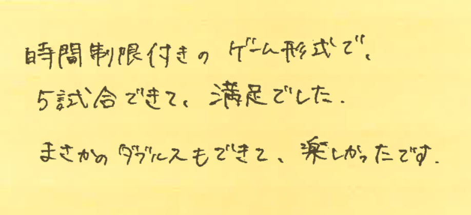 なかなかレベルが高く、初戦から激しいラリーの応酬をたくさん見ることができました!