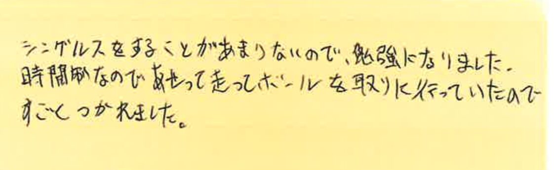 試合の方は、シングルス中心での開催となり、この日は、中級者と初級者での大会となりました!