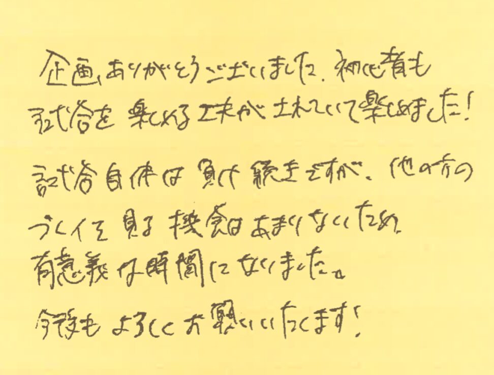 そして、この日、初めて参加してくださった方よりいただいた感想も紹介させていただきます!