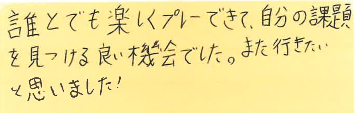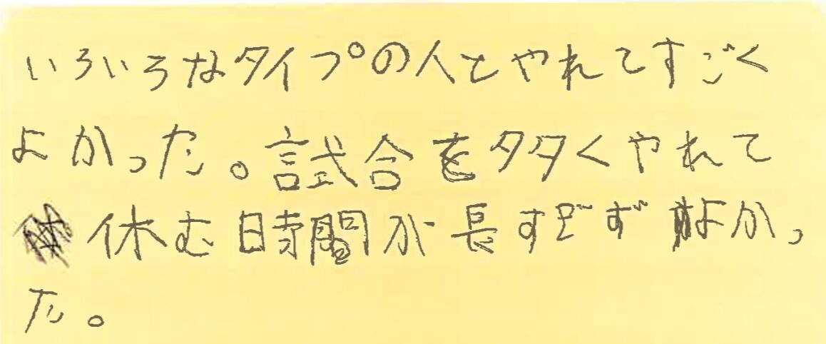 この日は、初参加の方が多かったのですが、しっかりとお楽しみいただきながら試合経験を積んでいただけたようです!