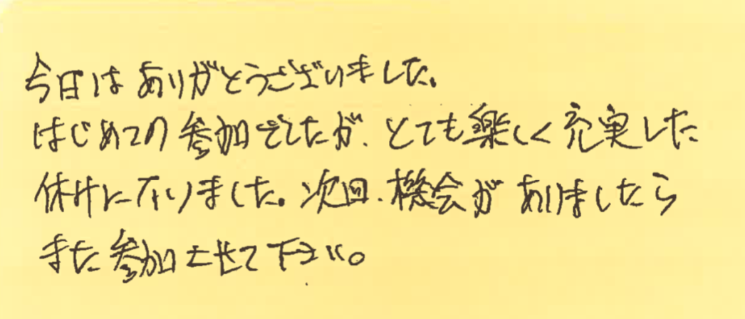 そして、この日、初めて参加してくださった方よりいただいた感想も紹介させていただきます!