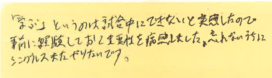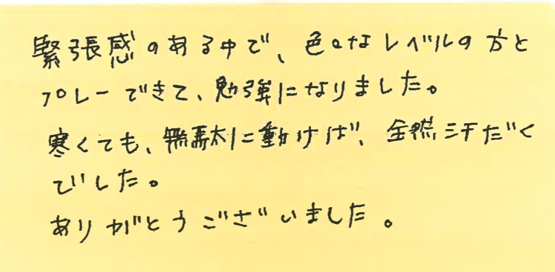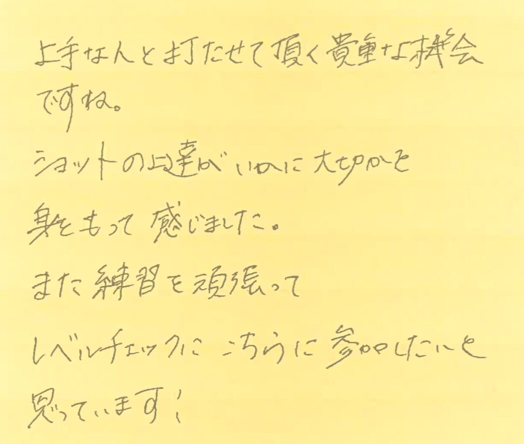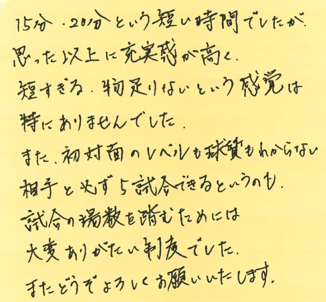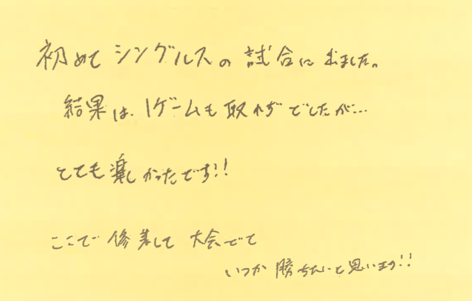 今回は、1月31、2月21、3月7日の横浜プチシングルス大会に初めて参加された方の感想をシェアさせていただきます!
