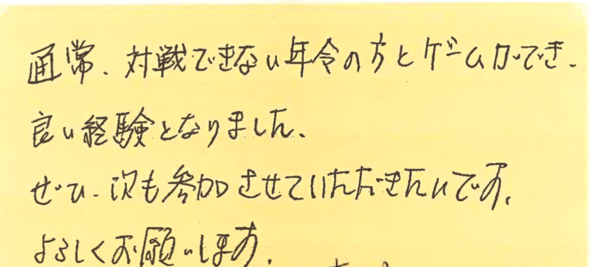 1月31、2月21、3月7日の横浜プチシングルス大会に初めて参加してくださった方の感想です!