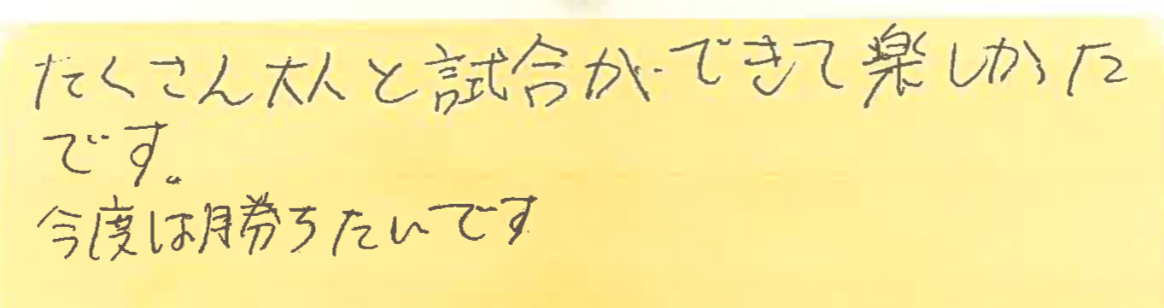 3月1、8、15、22、29日の調布プチシングルス大会に初めて参加してくださった方の感想です!