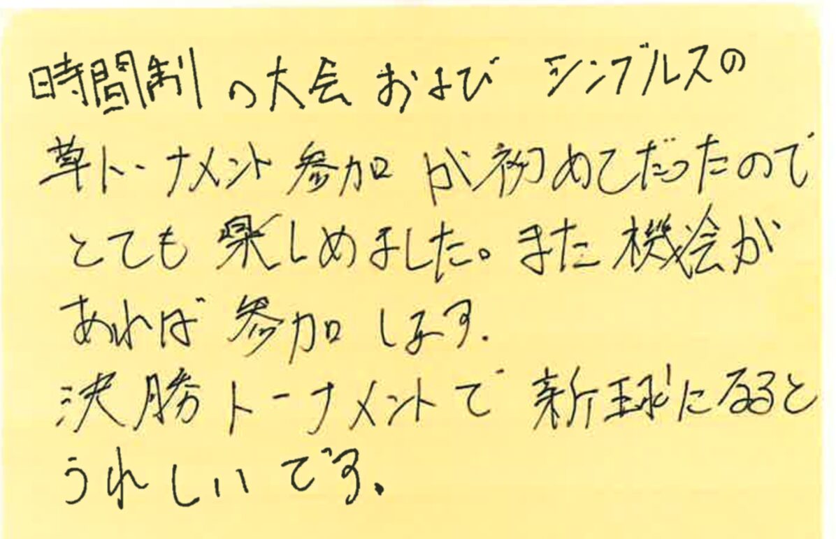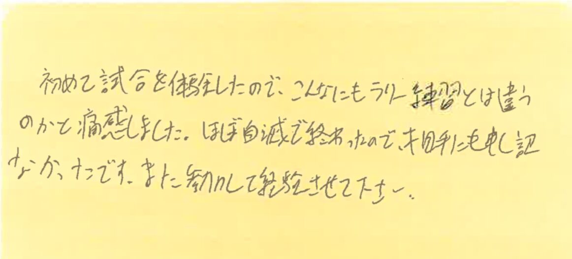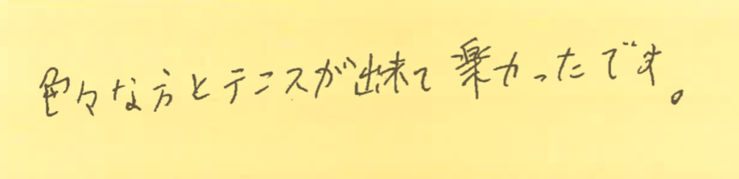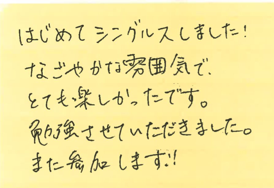 今回は、3月1、8、15、22、29日の調布プチシングルス大会に初めて参加された方の感想をシェアさせていただきます!