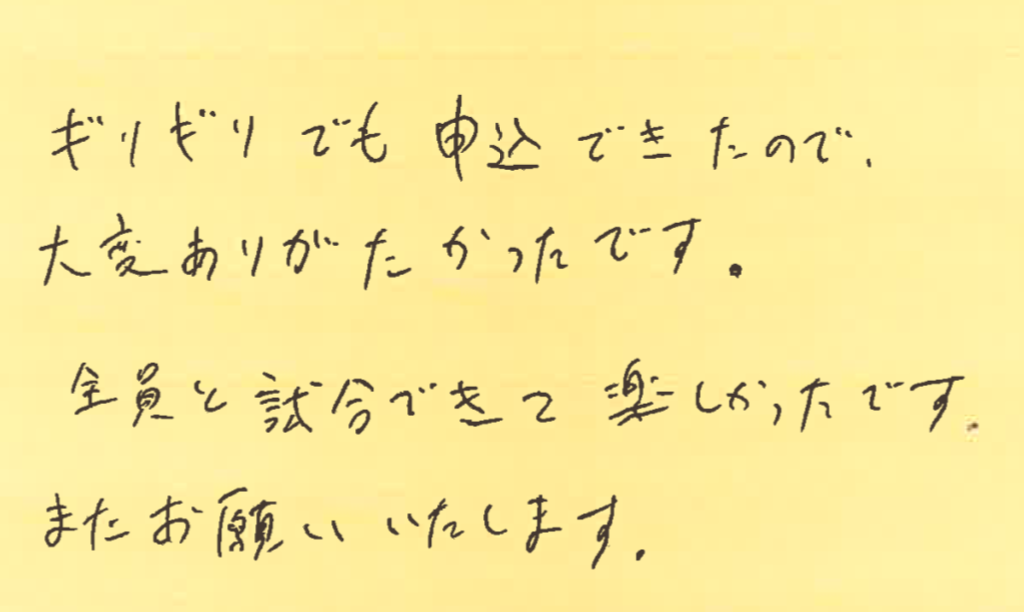 また、皆さんとコートでお会いできる日を楽しみにしております!!