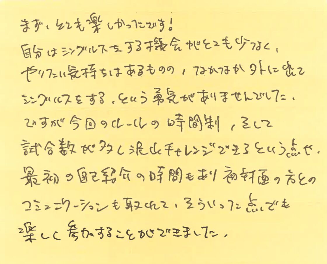 プチシングルス大会の杉下です!