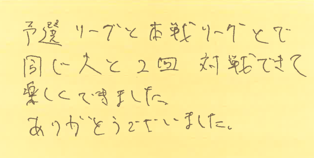 ぜひ、また対戦させてください!!・・・それまでにしっかりと修行しておきますので!!
