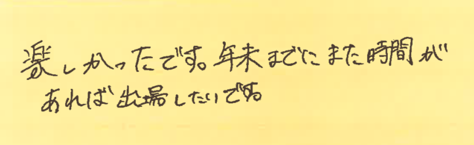 そして、この日、初めて参加してくださった方よりいただいた感想も紹介させていただきます!
