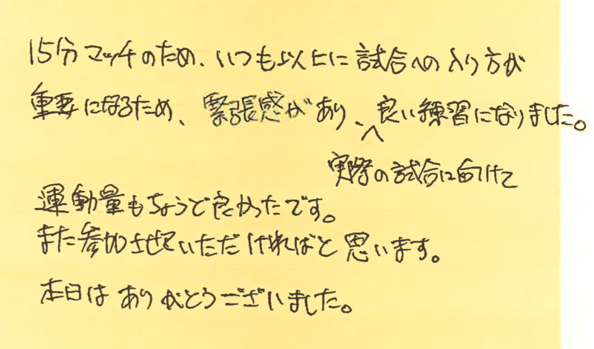 なお、この日は、初参加の方が多かったのですが、強い球を打つ方や、全然ミスをしない方など、バラエティー豊かな皆さんと、切磋琢磨させていただきました!