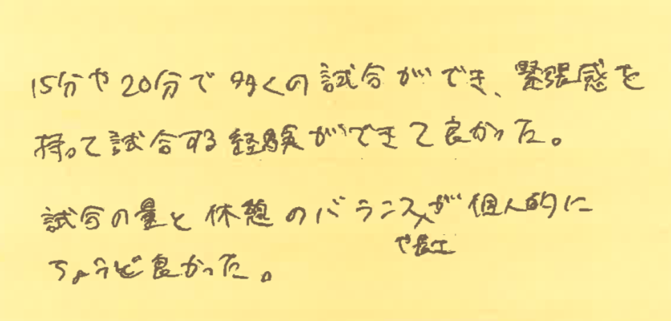 青空の下・・・でしたが、この日は風が結構強くて、ちょっと大変でしたが、皆さん、風に翻弄されつつも、しっかりと試合経験を積んでくださっておりました!