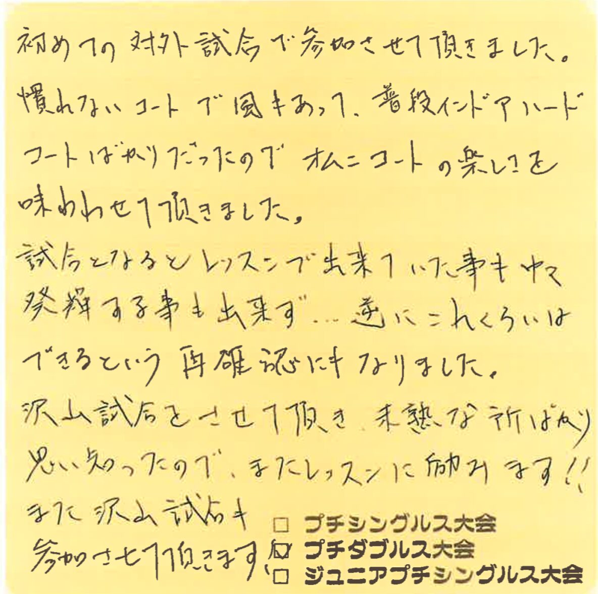 また、皆さんとコートでお会いできる日を楽しみにしております!!