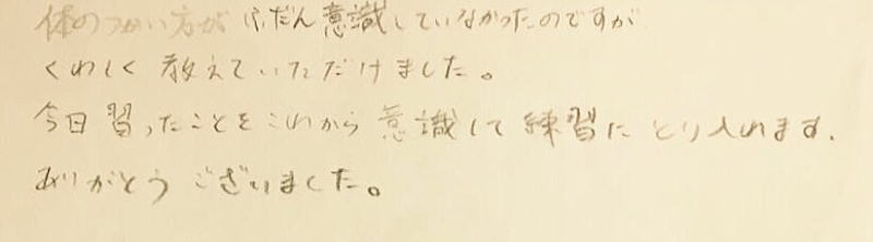 普段のレッスンではない指導の仕方をしていただいて新鮮でした。