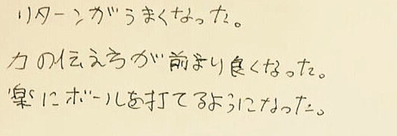 バックハンドのストロークがキレイに打てる様になった。」